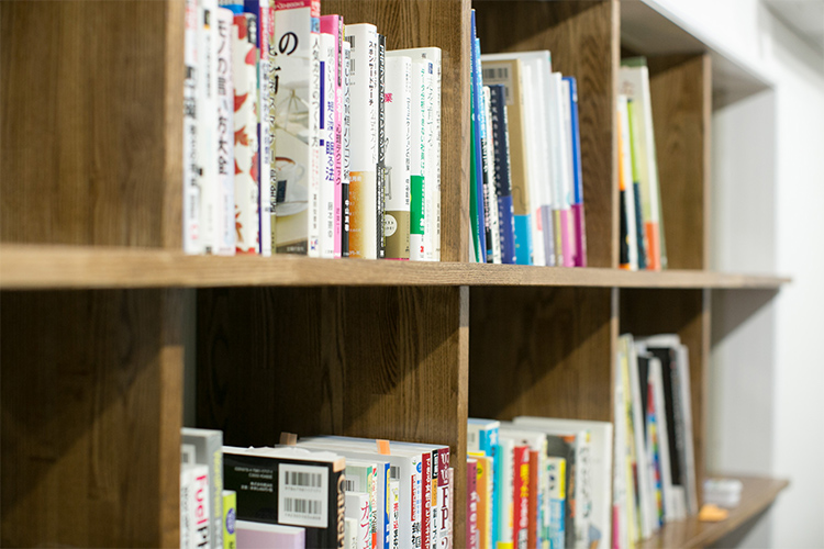 また書籍を気軽に取れるよう本棚を中央に配置し、